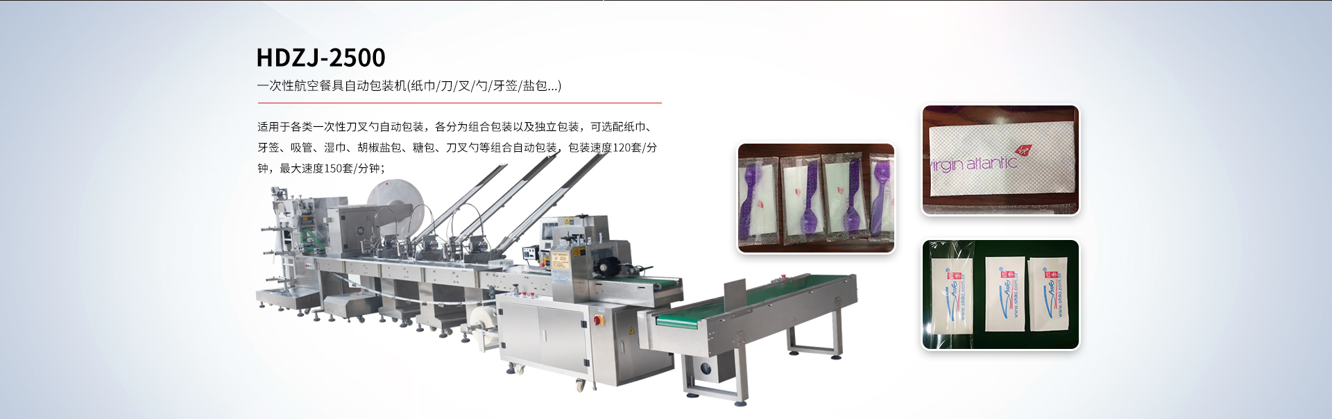 HDZJ-2500 一次性航空餐具自動包裝機(紙巾/刀/叉/勺/牙簽/鹽包...)
